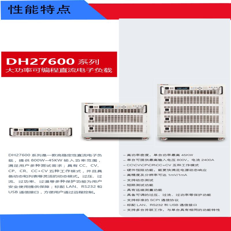 DH27600系列是一款高稳定性直流电子负载,提供800W~45KW输入功率范围,满足用户多种测试需求;具有CC、CV、CP、CR、CC+CV五种工作模式,并且具备动态和列表等灵活的动态模式。