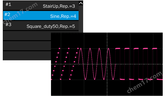 强大的任意波生成能力AFG模式 采用传统的DDS技术输出任意波。AWG模式 采用创新的TrueArb 逐点输出技术,可以在0.01 Sa/s ~ 2.5 GSa/s的范围里任意设置采样率,不仅具备传统DDS 技术的所有优点,而且克服了其可能增加抖动和失真的严重缺陷;提供零阶保持、线性插值和sinx/x插值等多种插值方式。分段编辑和播放 提供把最高1024段任意波无缝拼接的能力,每段波形可单独设置重复次数,最高次数65535次。这种模式在切换任意波时直接从前一段的最后一个点跳转到后一段的第一个点,不会产生空闲电平,适用于对波形切换要求很高的场合。