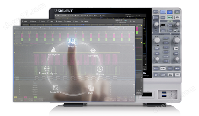 优秀的用户界面和用户体验· 配备12.1 英寸TFT-LCD 大显示屏,分辨率1280*800;· 电容式触摸屏,专门为示波器操作定义的各种手势,极大地提高了仪器操控效率;· 内嵌WebServer,可直接通过网页远程访问和操作示波器;· 支持鼠标和键盘操作;