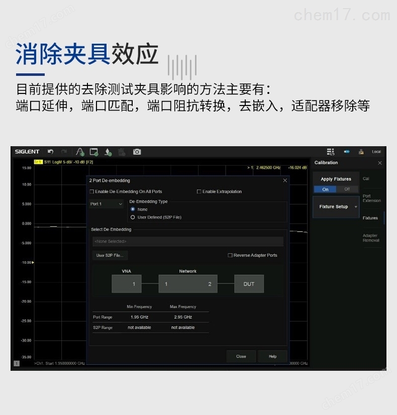 ● 支持端口阻抗转换、端口扩展、夹具仿真和去嵌入功能