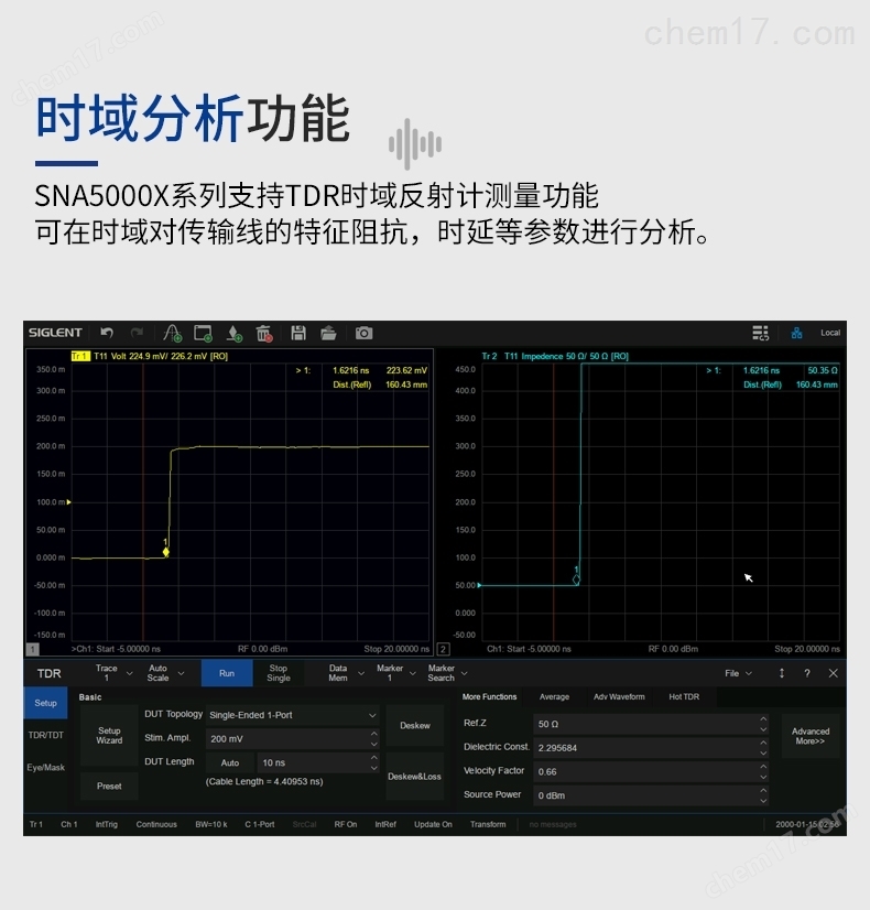 时域分析功能SNA5000X系列支持TDR时域反射计测量功能,可在时域对传输线的特征阻抗,时延等参数进行分析。