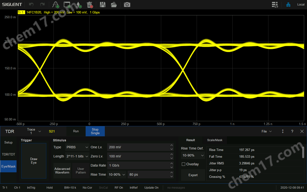 眼图分析SNA5000X搭载了眼图功能,眼图可以反映信号链路上传输的数字信号的整体特征,从中观察出码间串扰和噪声的影响,进而估计系统的优劣程度。眼图分析是高速系统信号完整性分析的核心,为需要对高速信号进行时域分析的客户节省了大量成本和时间。