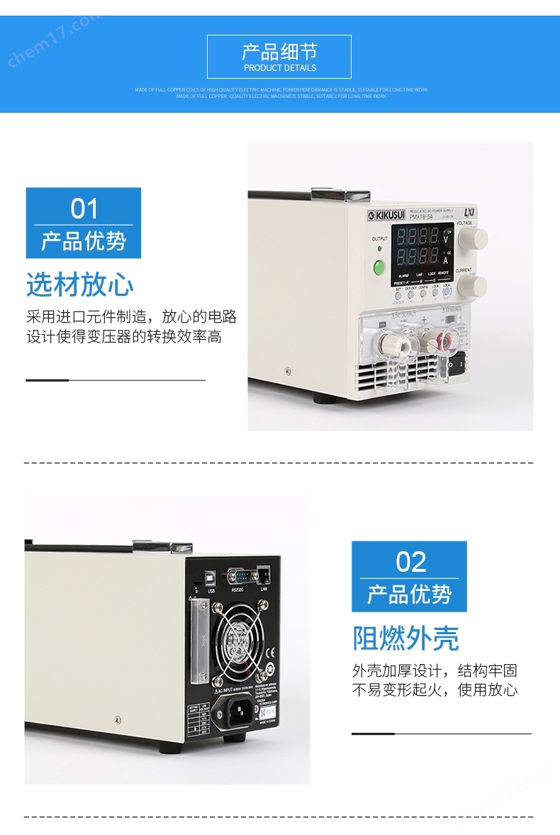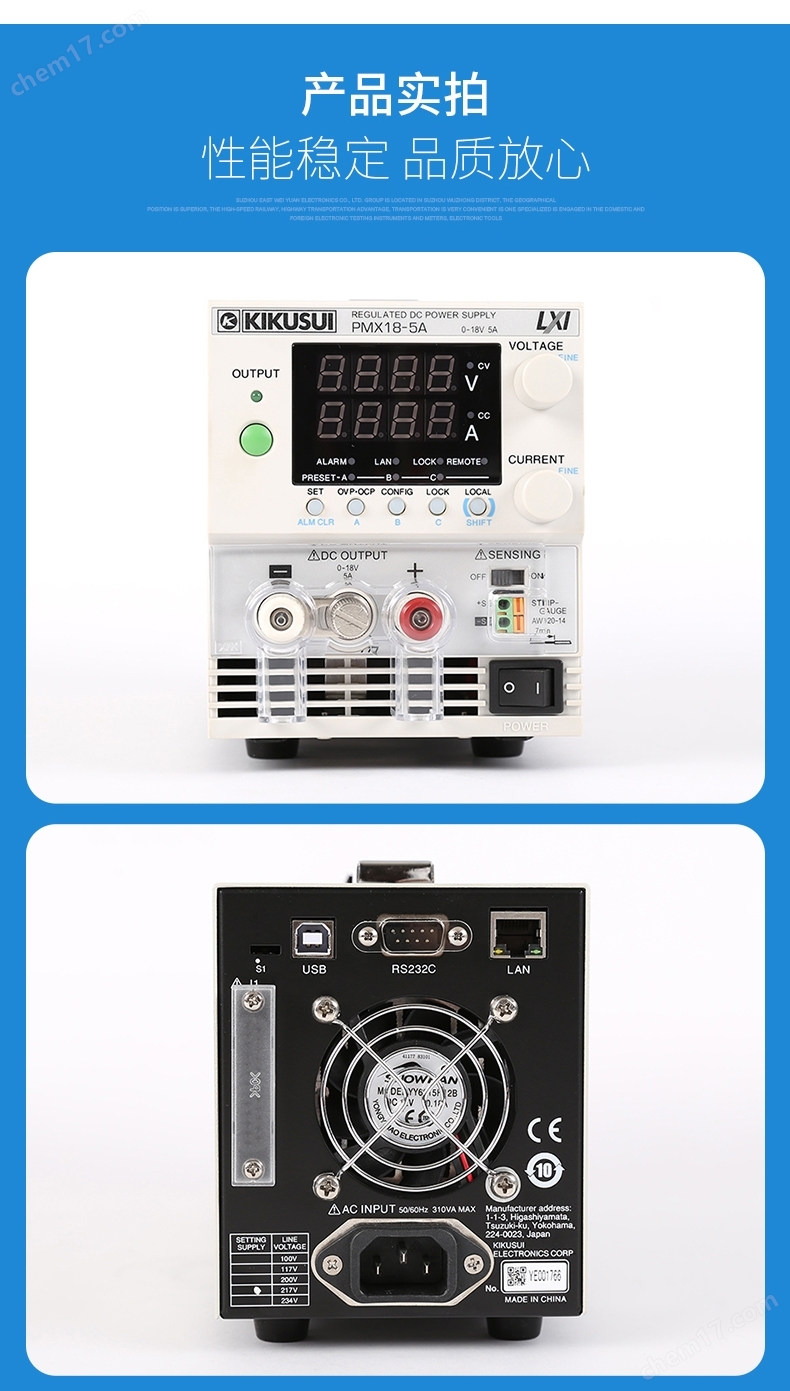 日本菊水KUKISUI直流稳压电源型号规格PMX18-2A -NEW-0 -18V/0 - 2A 标配LAN/USB/RS232C通信接口(LAN可支持LXI)